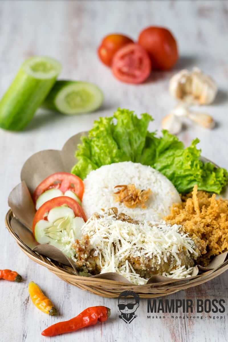 Makanan Favorit yang sudah tidak asing lagi yaitu Nasi Ayam Geprek, tetapi di Mampir Boss kami menggunakan sambal kacang, tersedia Ayam Geprek Mozzarella, Ayam Geprek Keju, Ayam Geprek Sambal Matah, Ayam Geprek Original