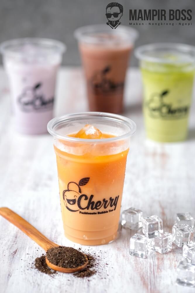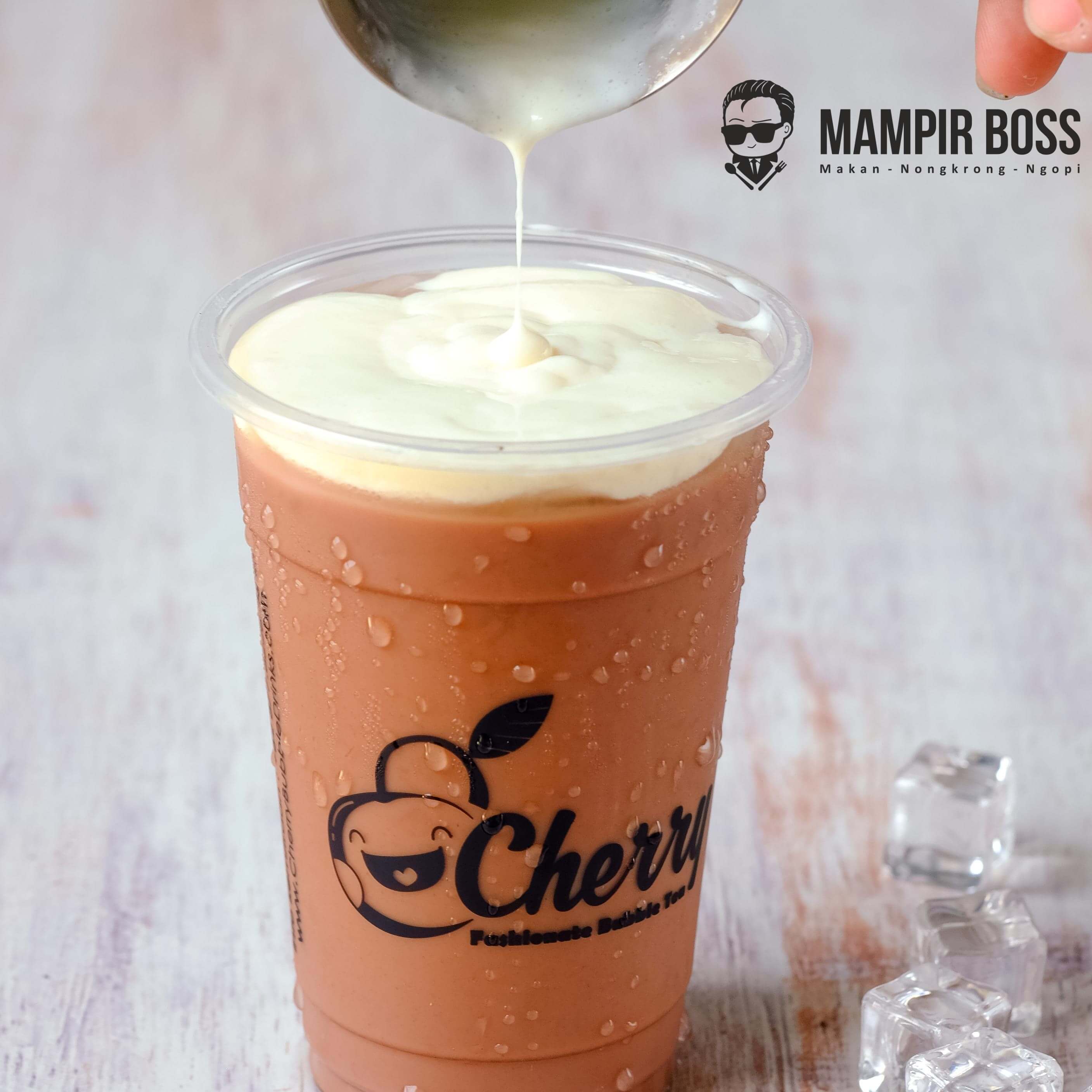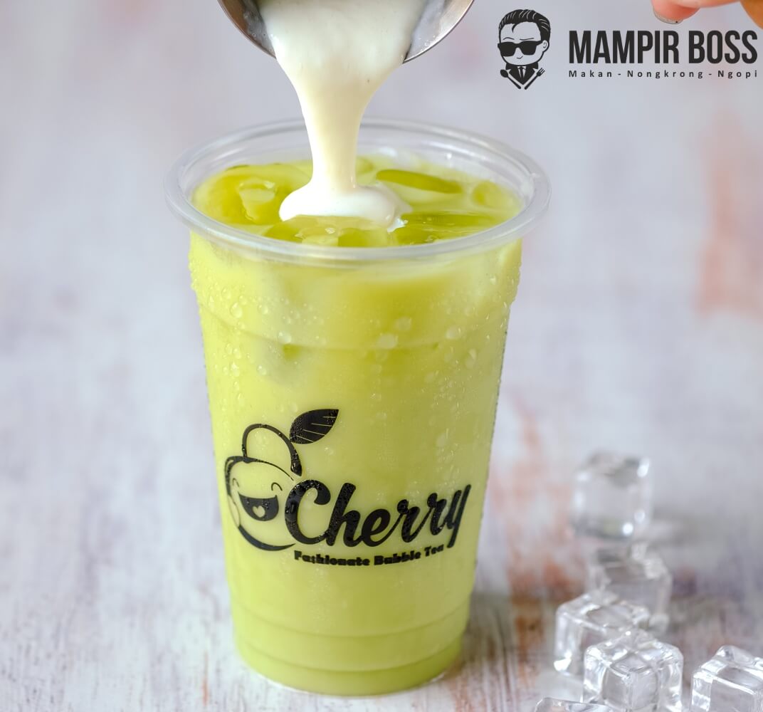 Variant menu minuman dengan cheese foam diatasnya, tersedia rasa Taro, Cappucino, Green Tea, Thai Tea, Signature Chocolatte