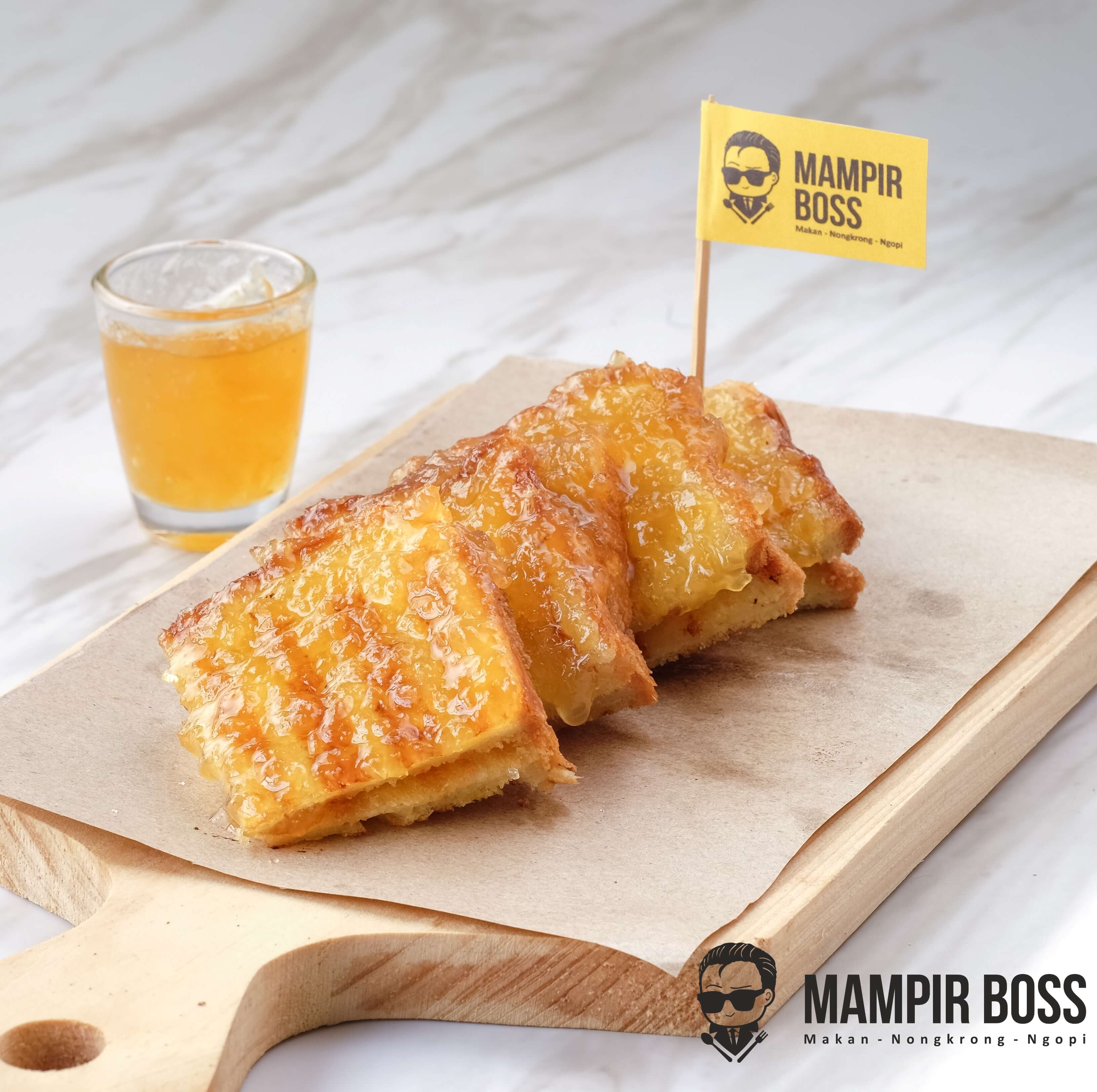 Cemilan teman nongkrong favorit di Mampir Boss, tersedia rasa Susu Coklat, Susu Keju, Coklat Keju, Kacang, Strawberry, Green Tea, Oreo dan Milo